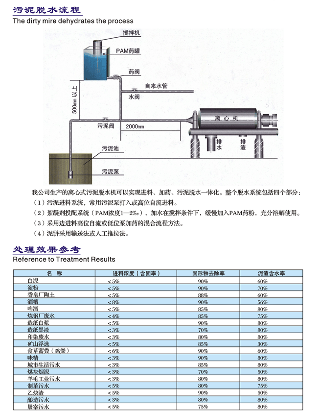 污泥離心脫水處理成套裝置(臥螺離心機),全稱:臥式螺旋卸料沉降離心機,是城市生活污水處理、自來水生產(chǎn)過程中的污泥處理、工農(nóng)業(yè)污水處理工程中的重要設(shè)備。