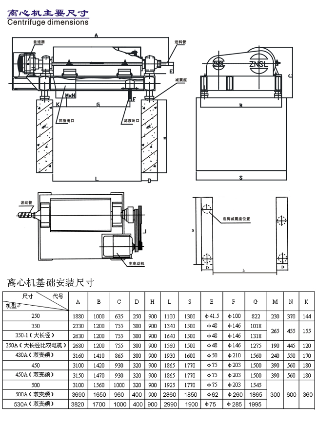 “臥式螺旋卸料沉降離心機(簡稱臥螺離心機)是利用離心沉降原理分離懸浮液的設(shè)備。對固相顆粒當(dāng)量直徑=3um、重量濃度比:10%或體積濃度比=70%、液固比重差:0.05g/cm3的各種懸浮液均適合采用該類離心機進(jìn)行液固分離或顆粒分級。