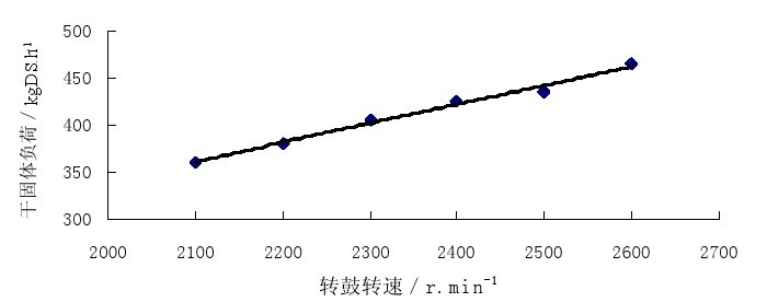 圖3、干固體負(fù)荷隨離心機(jī)轉(zhuǎn)鼓轉(zhuǎn)速變化的曲線