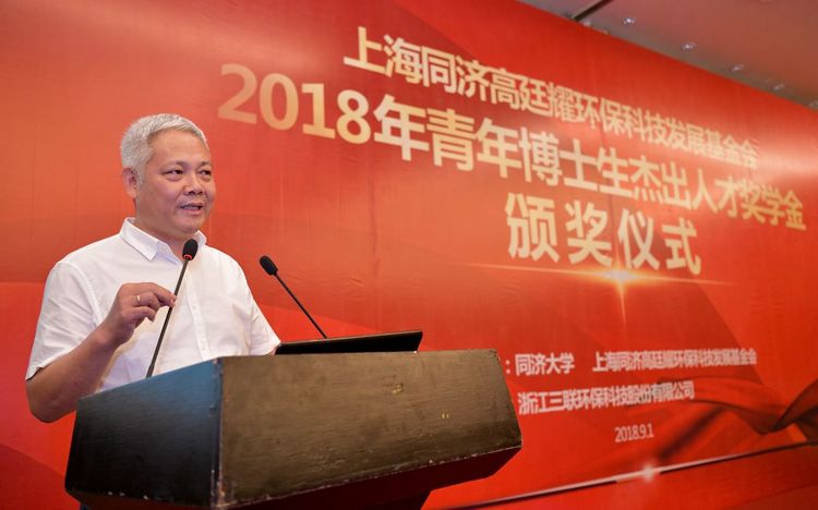 方守恩書記在致辭中代表同濟(jì)大學(xué)對(duì)獲獎(jiǎng)的各位優(yōu)秀青年博士生表示祝賀,對(duì)給予此次活動(dòng)大力支持的浙江省麗水市人民政府、麗水市恒力離心機(jī)械設(shè)備有限公司以及長(zhǎng)期支持基金會(huì)不斷發(fā)展的江蘇維爾利環(huán)??萍脊煞萦邢薰颈硎局孕牡母兄x。他說,基于對(duì)生態(tài)文明建設(shè)和環(huán)境保護(hù)重要性的認(rèn)識(shí),在高廷耀老校長(zhǎng)的倡議下,同濟(jì)大學(xué)于2003年正式成立了上海同濟(jì)高廷耀環(huán)保科技發(fā)展基金會(huì)。十五年來,基金會(huì)始終不忘初心,積極致力于“培養(yǎng)新一代環(huán)保專業(yè)新型人才;促進(jìn)中國(guó)環(huán)保高新技術(shù)(產(chǎn)品)的研制和科技交流與發(fā)展”,為我國(guó)高級(jí)環(huán)保青年人才培養(yǎng)和環(huán)保產(chǎn)業(yè)可持續(xù)發(fā)展,發(fā)揮了積極的推動(dòng)和引導(dǎo)作用。黨的十九大報(bào)告提出,實(shí)現(xiàn)“兩個(gè)一百年”奮斗目標(biāo)和中華民族偉大復(fù)興的中國(guó)夢(mèng),是要把我國(guó)建成富強(qiáng)民主文明和諧美麗的社會(huì)主義現(xiàn)代化強(qiáng)國(guó)。美麗中國(guó)建設(shè),需要各級(jí)政府、企業(yè)和高校持續(xù)不懈的努力,更需要青年一代切實(shí)承擔(dān)起應(yīng)有的歷史責(zé)任。
